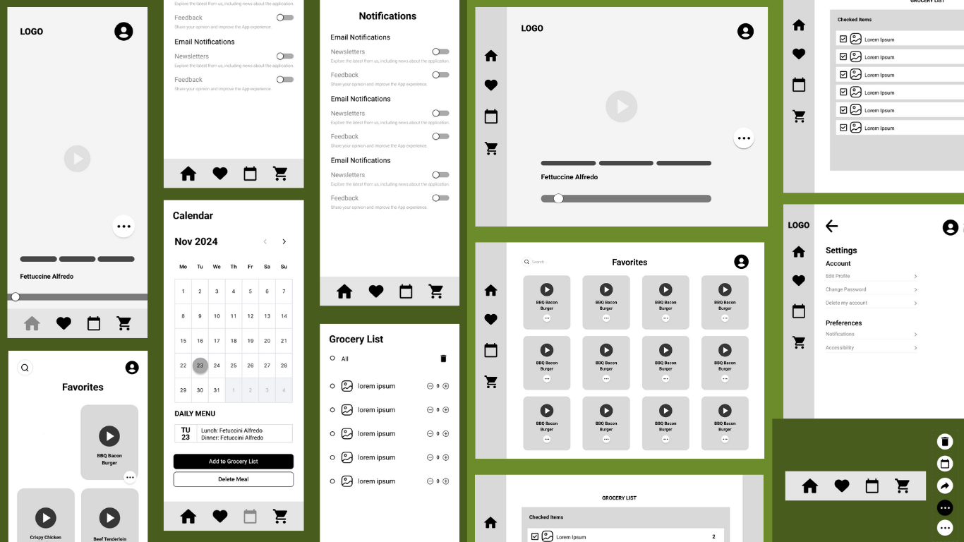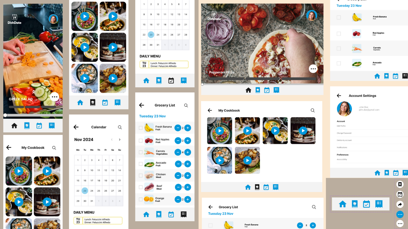 A school UX case study for an app that helps students create grocery lists based on cooking videos and recipes. Focused on simplifying the meal planning experience for busy college users.